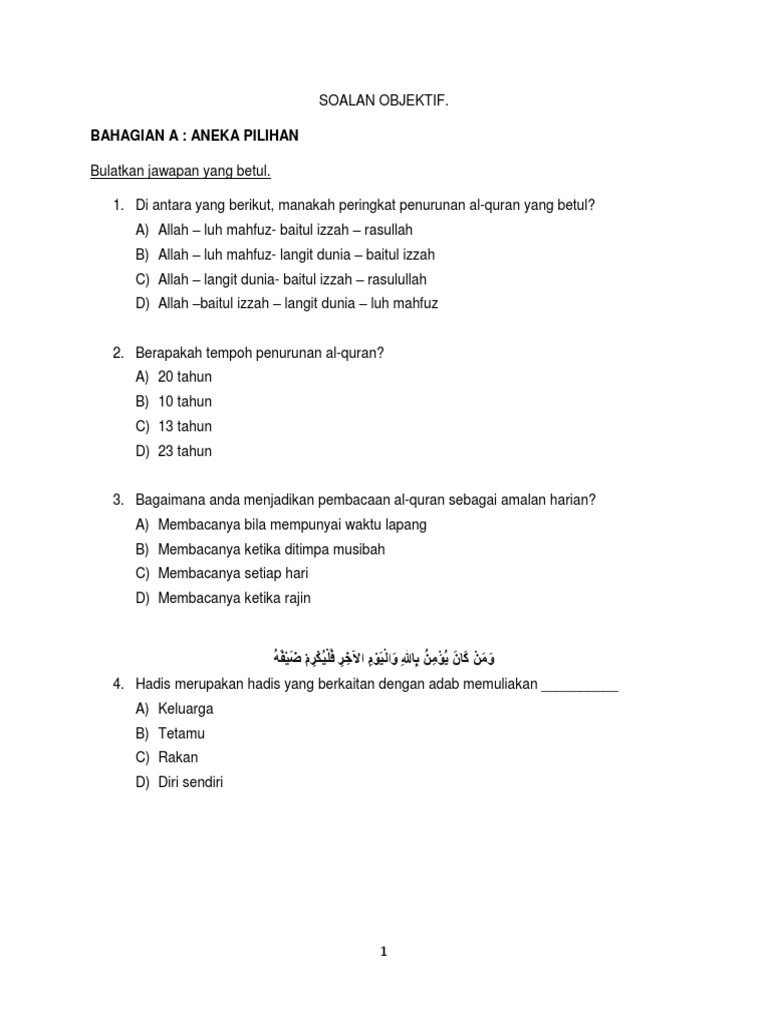 1 Soalan Objektif 20 Markah A Jawab Semua Soalan Bulatkan Pilihan Jawapan Yang Paling Tepat 1 Antara Berikut Yang M Pengikut Pendidikan Makanan